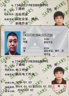 公司員工完成特種設(shè)備作業(yè)人員、高空作業(yè)、電工作業(yè)上崗、安全生產(chǎn)證書(shū)更新注冊(cè)